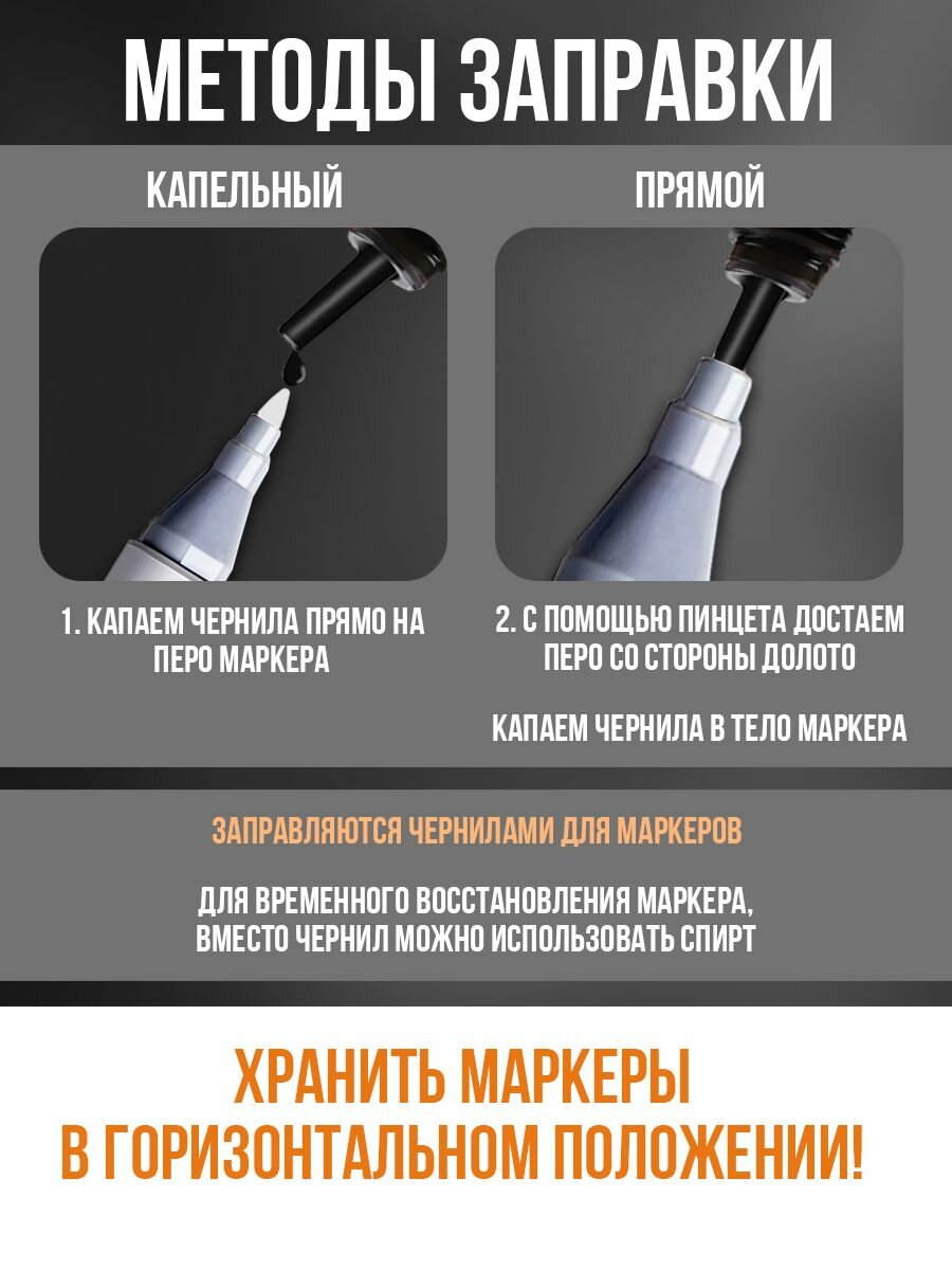 Набор маркеров строительных с длинным наконечником разноцветные, перманентные, игольчатые