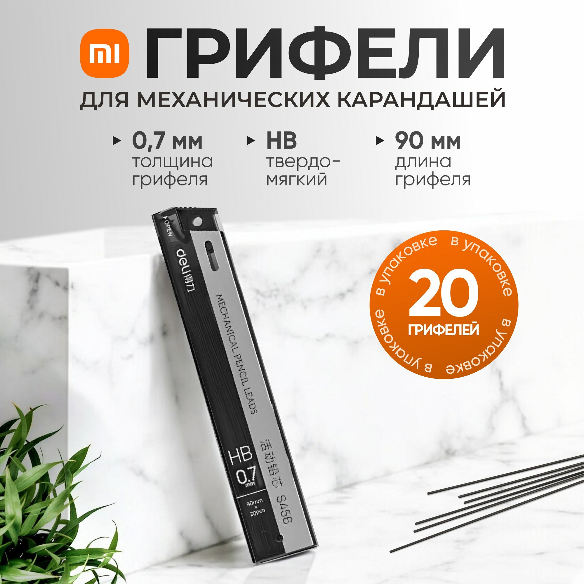 Грифели для карандаша Xiaomi Deli S002 (толщина - 0.7 мм, твердость - HB) интересное: