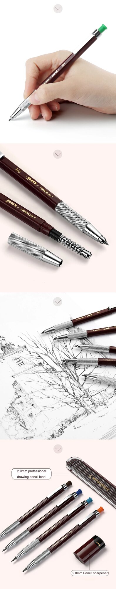 Механический карандаш Uni MH-500 металлический 2,0 мм, Refill 2B интересное: