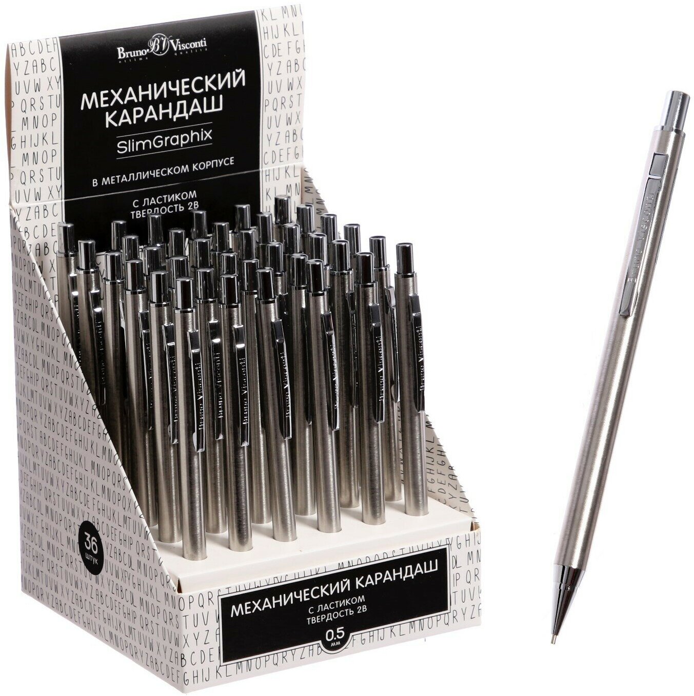 Карандаш Bruno Visconti, круглый, металлический, ластик, серебристый, 0.5мм интересное: