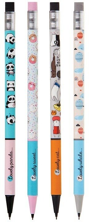 Карандаш механич MESHU "Jucy cats" с ластиком, 0,7мм, интересное: