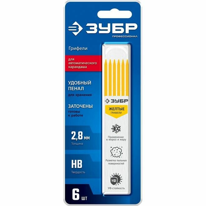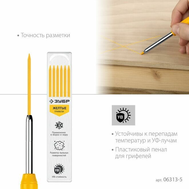 Купить Сменные грифели для автоматического строительного карандаша ЗУБР 6шт, желтые 06313-5