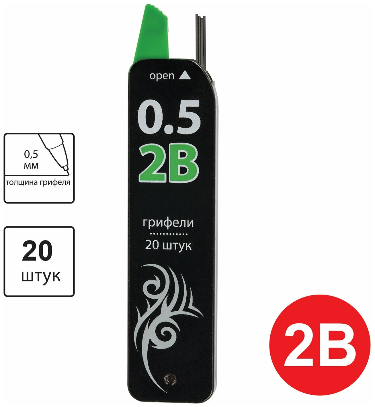 Грифели запасные 0,5 мм, 2B, BRAUBERG, комплект 20 шт, "Black Jack", 180448 интересное: