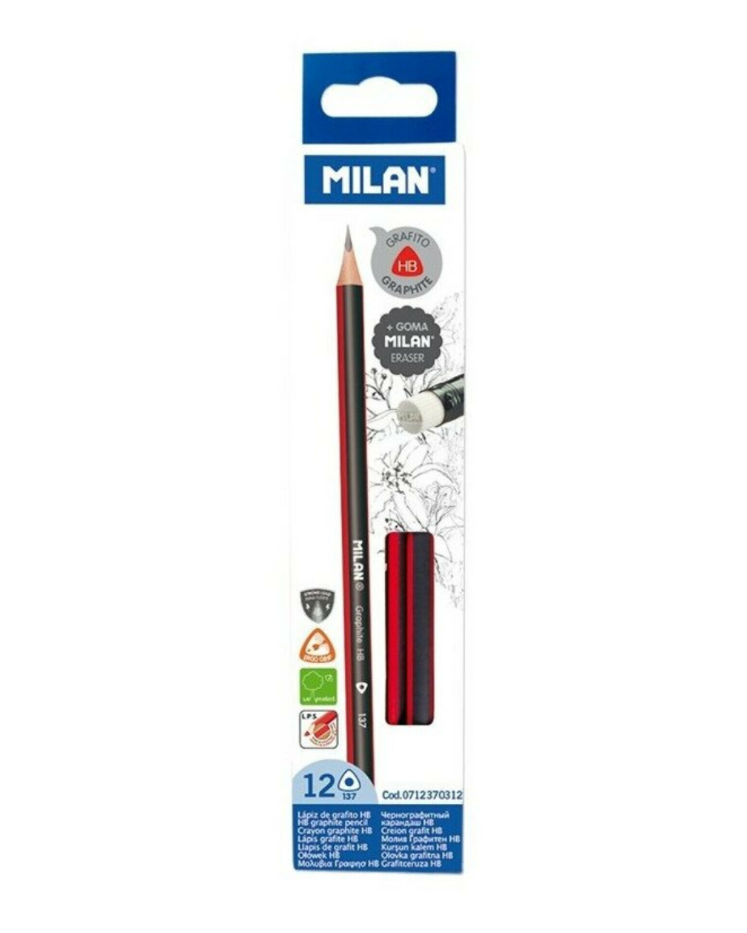 Чернографитные карандаши HB с трехгранным ластиком, 12 штук в упаковке MILAN Испания интересное:
