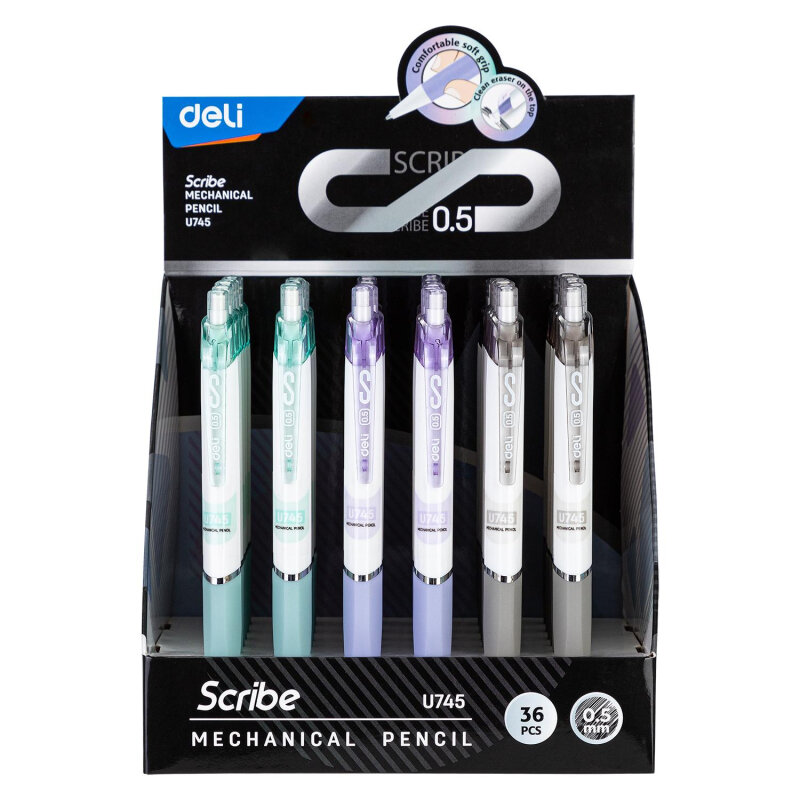 Купить Карандаш механический Deli, 0,5 мм с ластиком, цвет в ассорттименте, 5 штук