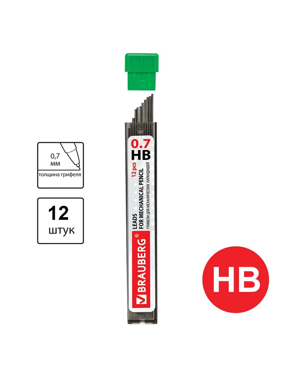 36шт Грифели запасные 0,7 мм, HB, BRAUBERG, комплект 12 шт. интересное: