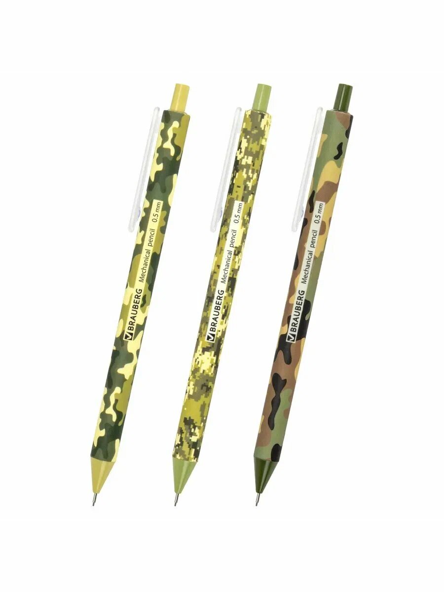 Купить Карандаш механический, 3 шт, HB, 0,5 мм, цвета: камуфляж + ПОДАРОК: набор сменных грифелей(20 шт)