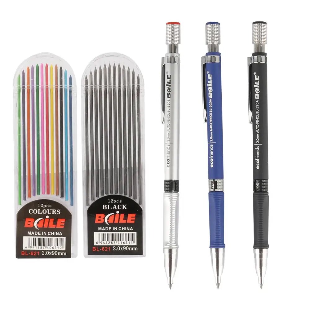 Механический карандаш EYBOP 2.0 мм черный/цветной, 2mm colorful refill