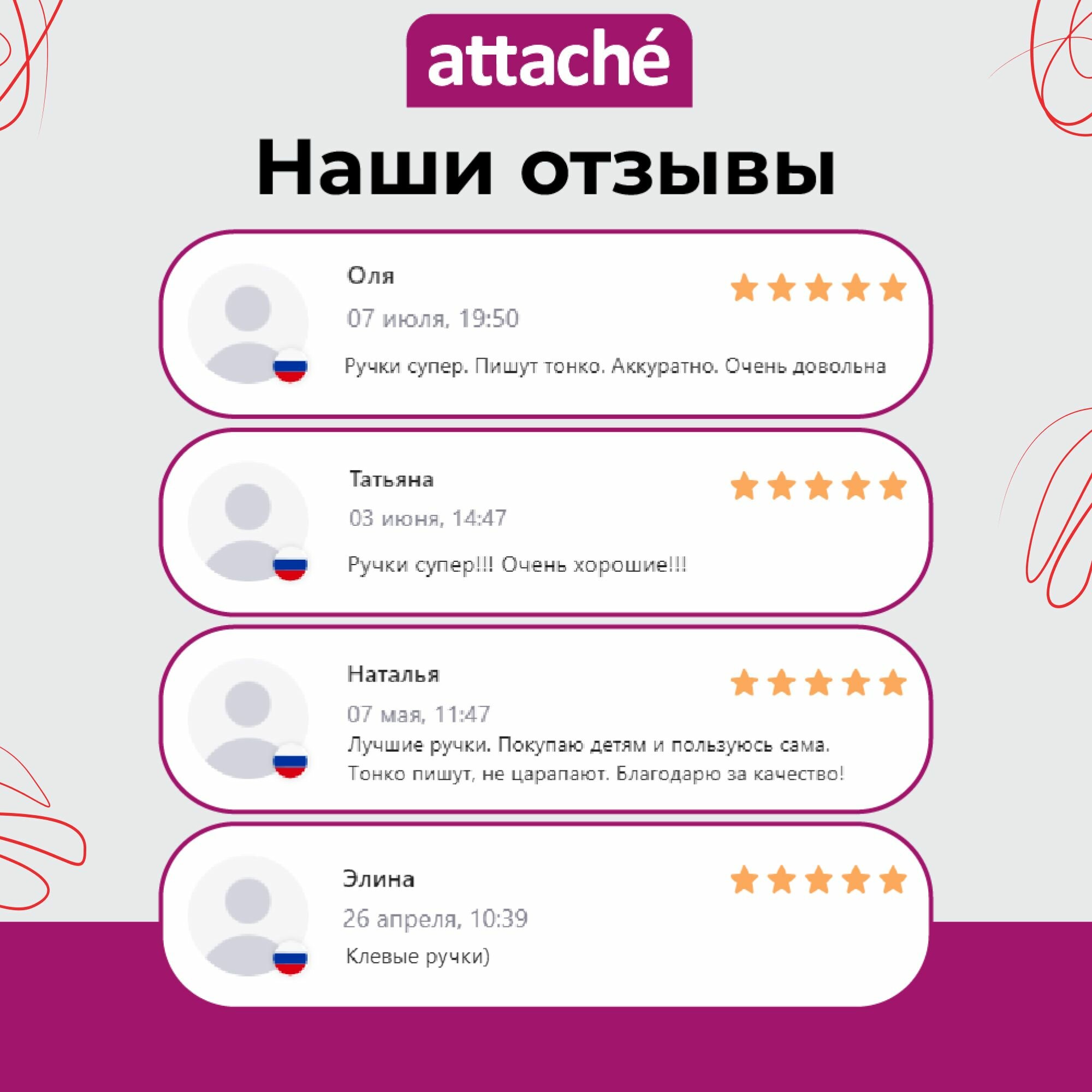 Ниже Вы можете прочитать отзывы на Ручки гелевые Attache, красные, линия 0.5 мм, набор 12 шт, ознакомится с подробными характеристиками, посмотреть интересные обзоры и фотографии на Ручки гелевые Attache, красные, линия 0.5 мм, набор 12 шт.