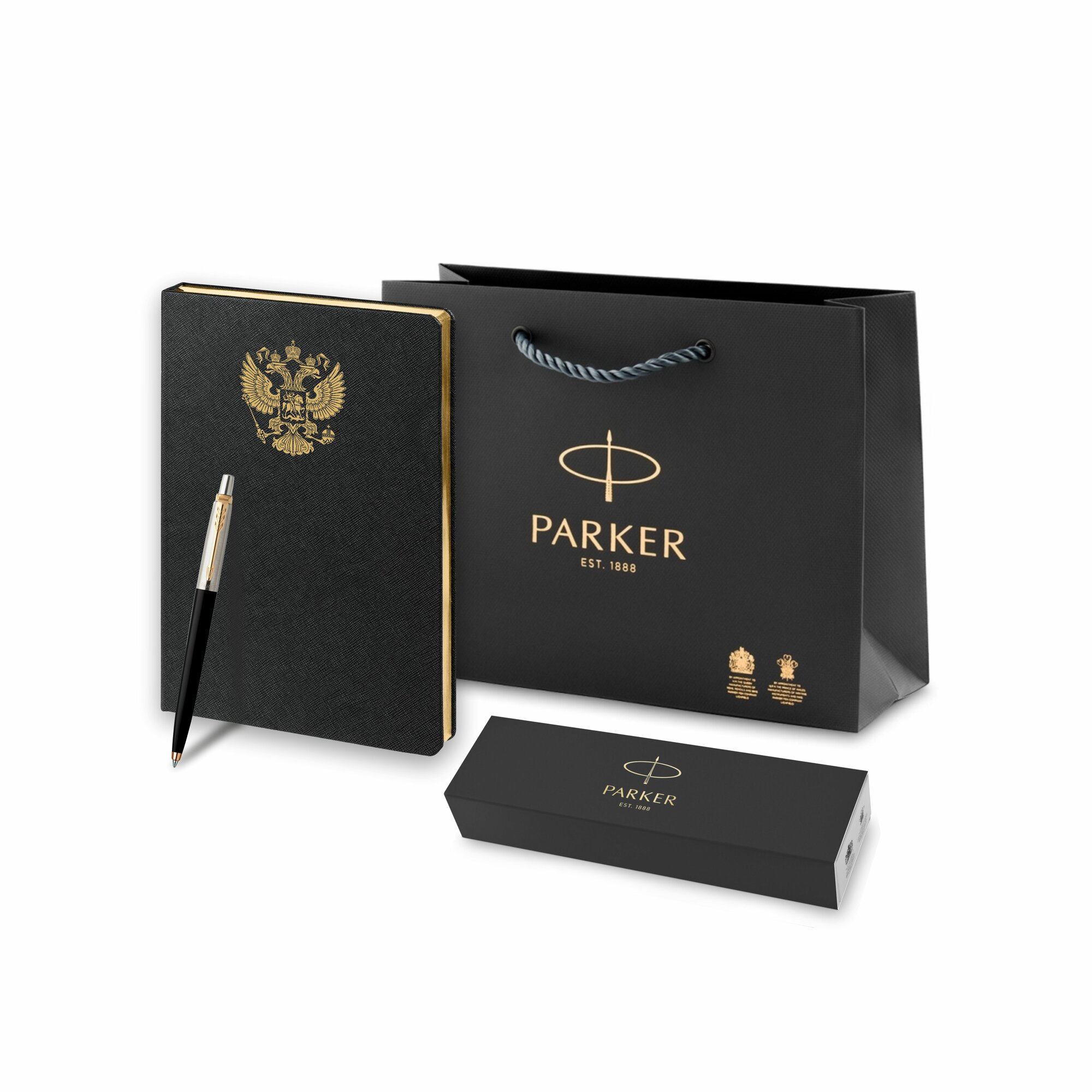 Набор Шариковая ручка Parker Jotter K160, цвет: Black/GT и Ежедневник "Герб" в подарочной упаковке интересное: