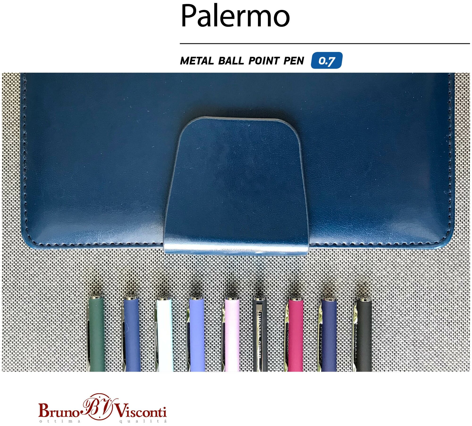 Ручка шариковая поворотная, 0.7 мм, BrunoVisconti PALERMO, стержень синий, металлический корпус Soft Touch синий, в футляре