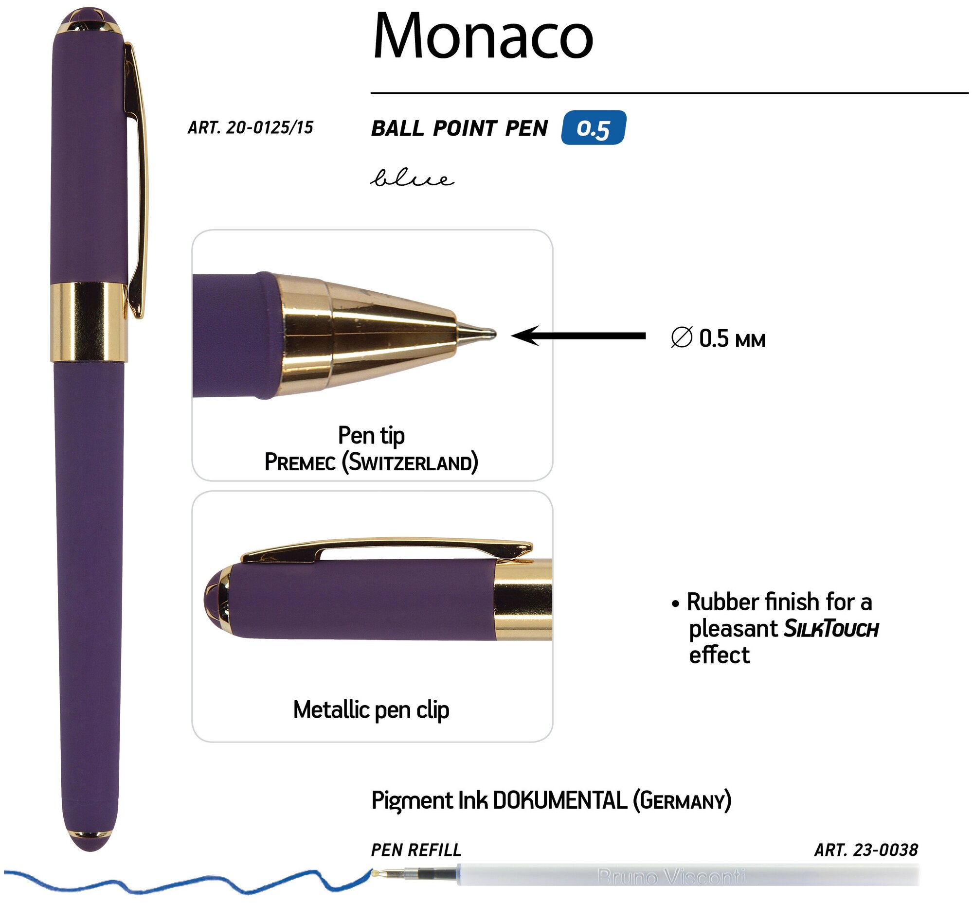Шариковая ручка Bruno Visconti Monaco 20-0125/15, фиолетовая, с колпачком, синие чернила 20-0125/15 цена за 1 шт. интересное: