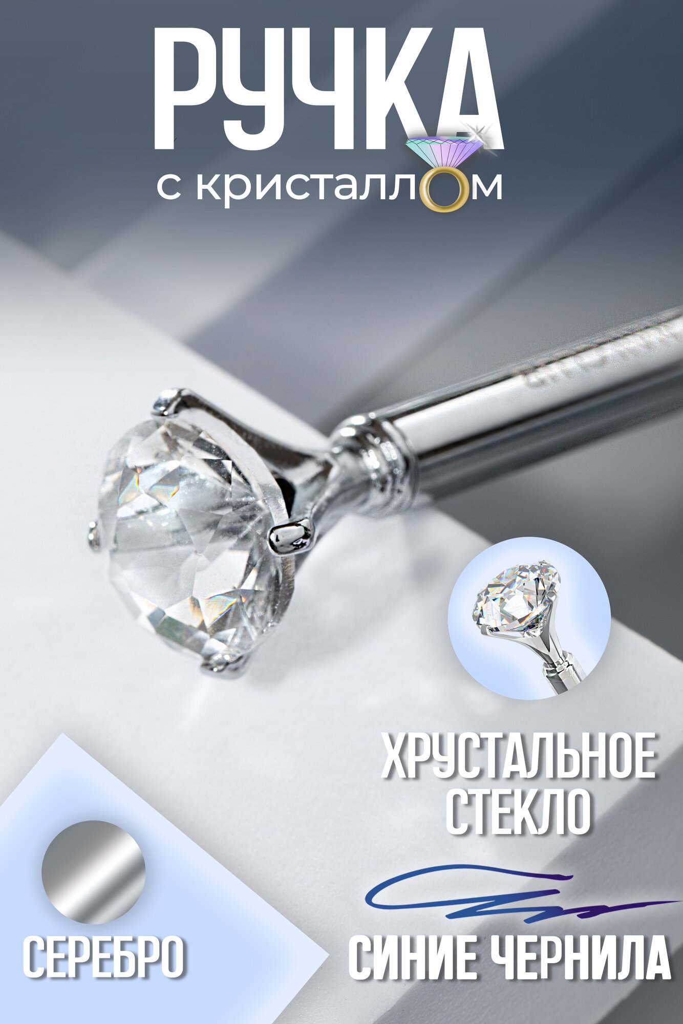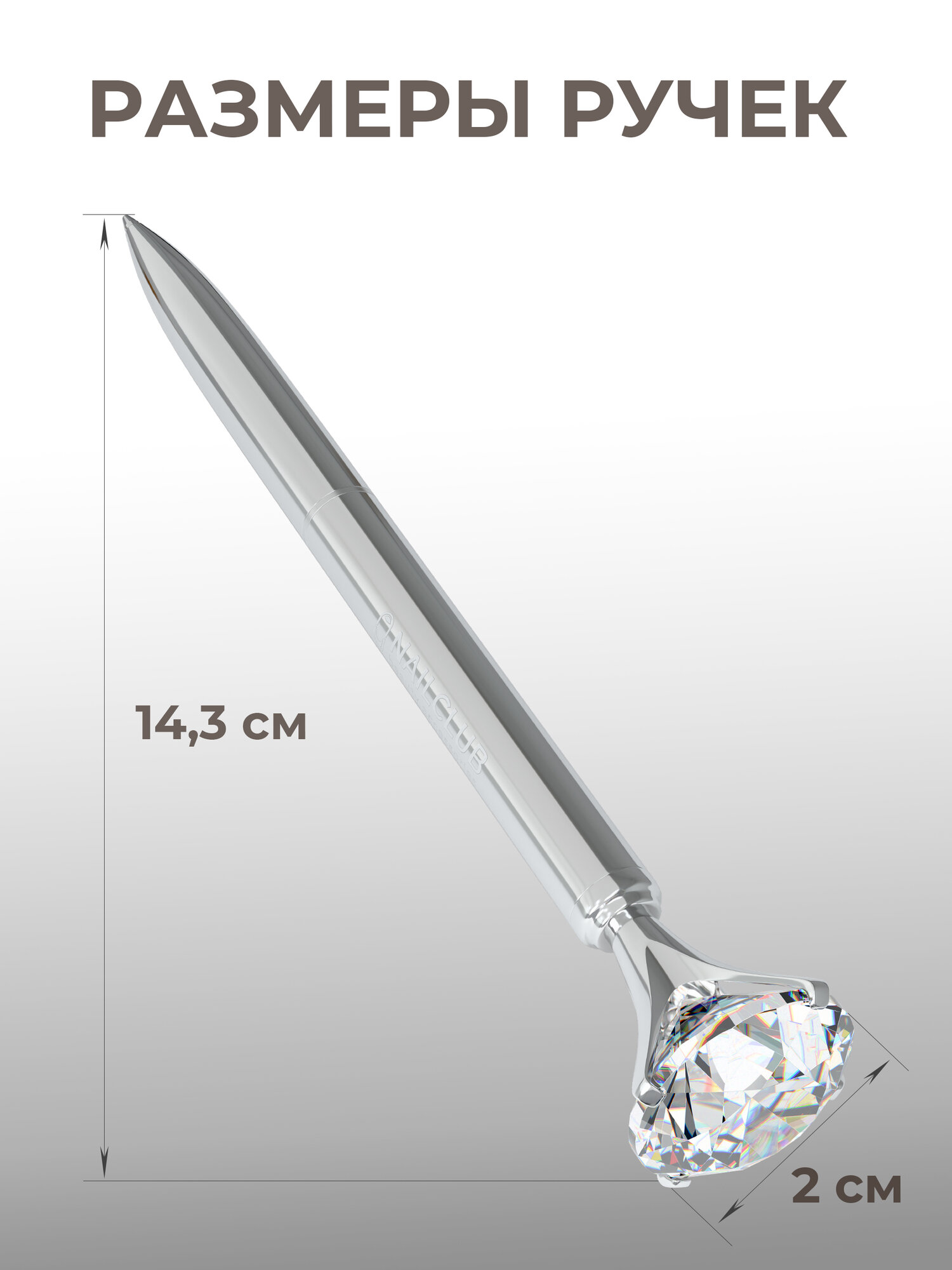 Купить Nail Club profession Фирменная металлическая шариковая ручка Nail Club, серебряная с хрусталиком, черный цвет чернил/1шт.