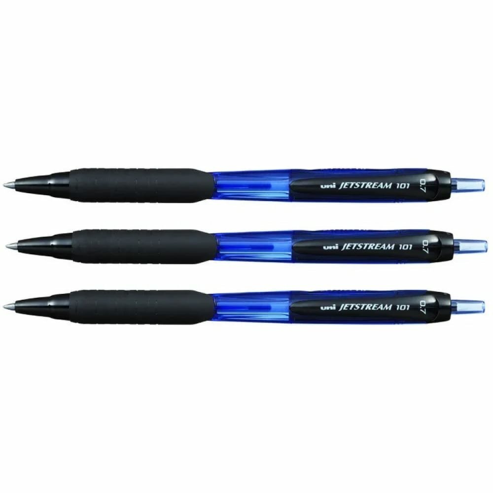 Ручка шариковая UNI Jetstream SXN-101-05, 0,5мм, автомат, с резиновым упором, синяя 77361(3 шт. в упаковке)