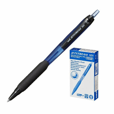 Ручка шариковая масляная автоматическая с грипом UNI (Япония) "JetStream", синяя, узел 0,7 мм, линия письма 0,35 мм, SXN-101-07 BLUE, 12шт в компл.