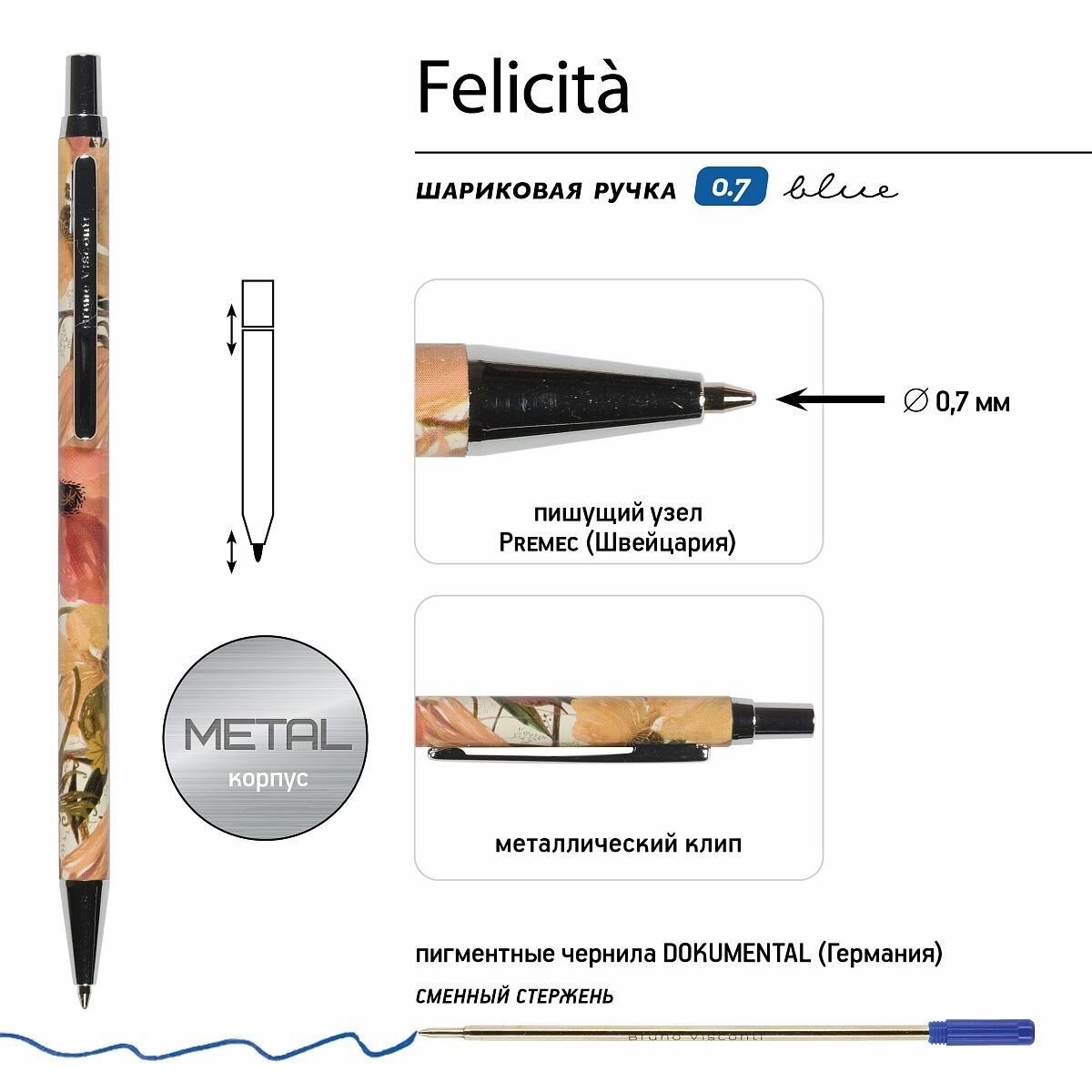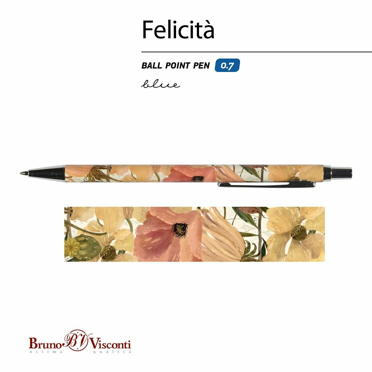 Купить Ручка BrunoVisconti шариковая автоматическая, 0.7 мм синяя, FELICITA "Цветочная Страсть" в футляре, металлический корпус