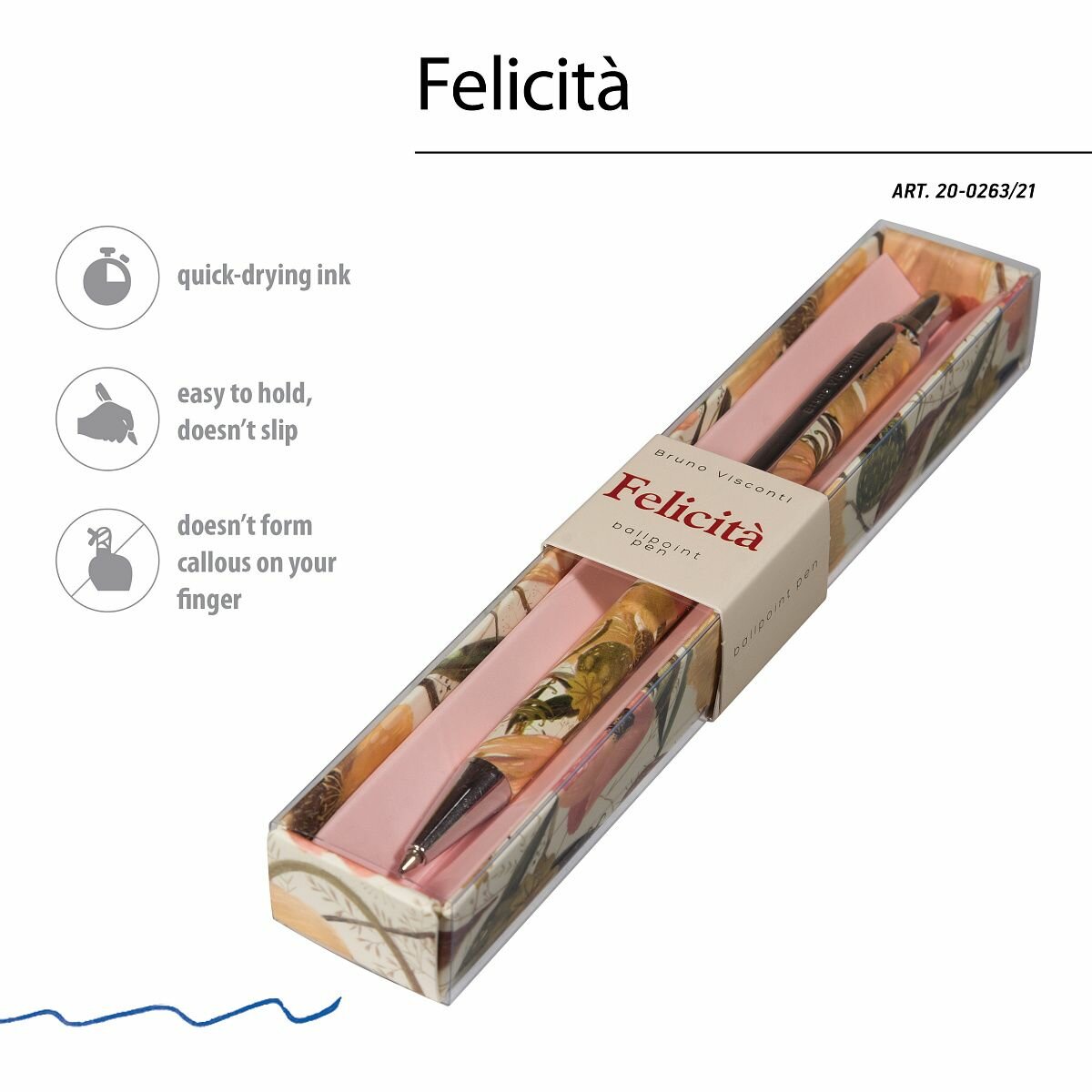 Ручка шариковая автоматическая BrunoVisconti, 0.7 мм, синяя, Felicita «тропические фрукты», металлический корпус, в футляре, Арт. 20-0263/14