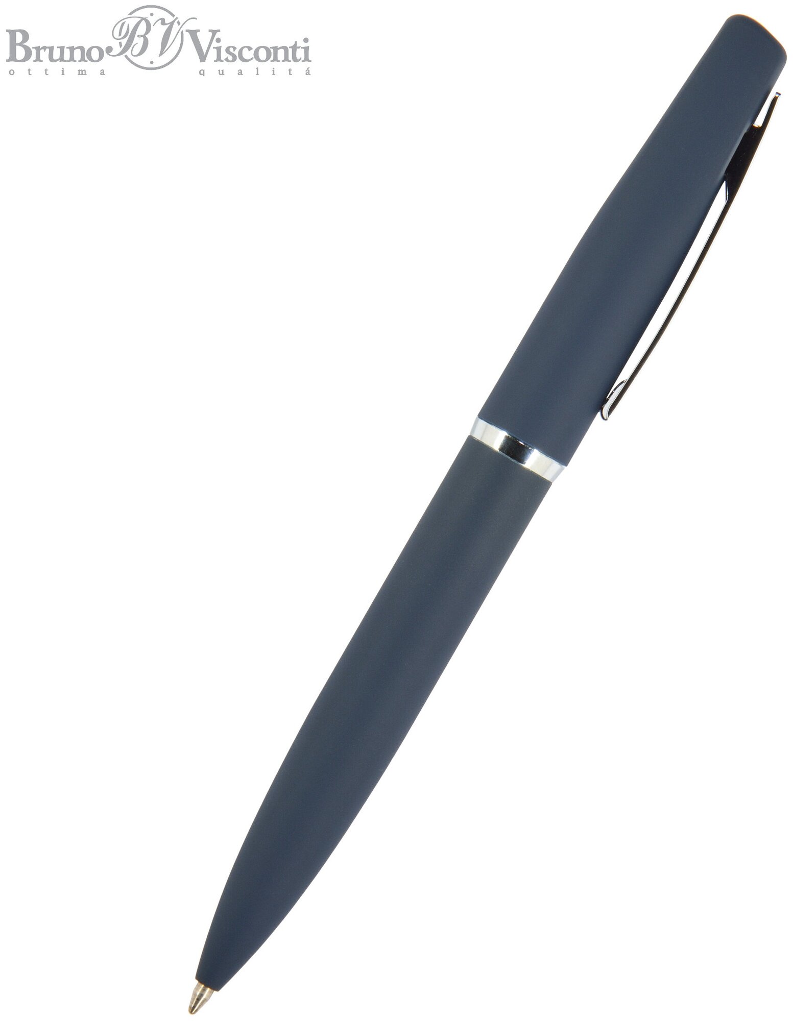 Ручка шариковая автоматическая BrunoVisconti, 1 мм, синяя, в коричневом футляре, SAN REMO (серый металлический корпус), Арт. 20-0249/051