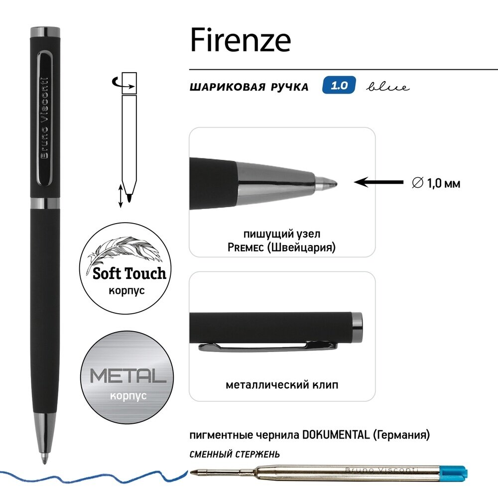 Ручка шариковая автоматическая Bruno Visconti Firenze (0.7мм, синяя, корпус черный) (20-0298/03), 1шт.