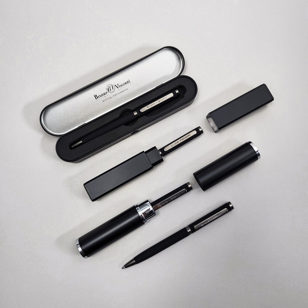 Ручка роллер BrunoVisconti®0.7 мм, синяя, в чёрном футляреSORRENTO (черный металлический корпус)