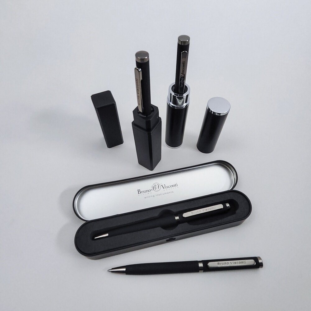Ручка BrunoVisconti шариковая автоматическая 1 мм, синяя, в чёрном футляре SAN REMO (черный металлический корпус) Арт. 20-0249/601