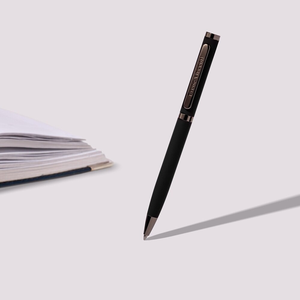 Ручка BrunoVisconti шариковая автоматическая 1 мм, синяя, в черном круглом тубусе FIRENZE (черный металлический корпус) Арт. 20-0298/02