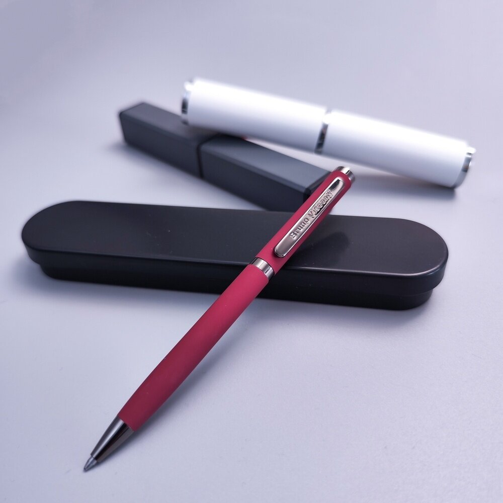 Ручка BrunoVisconti шариковая автоматическая 1 мм, синяя, в Soft Touch футляре SAN REMO (бордовый металлический корпус) Арт. 20-0249-02/07