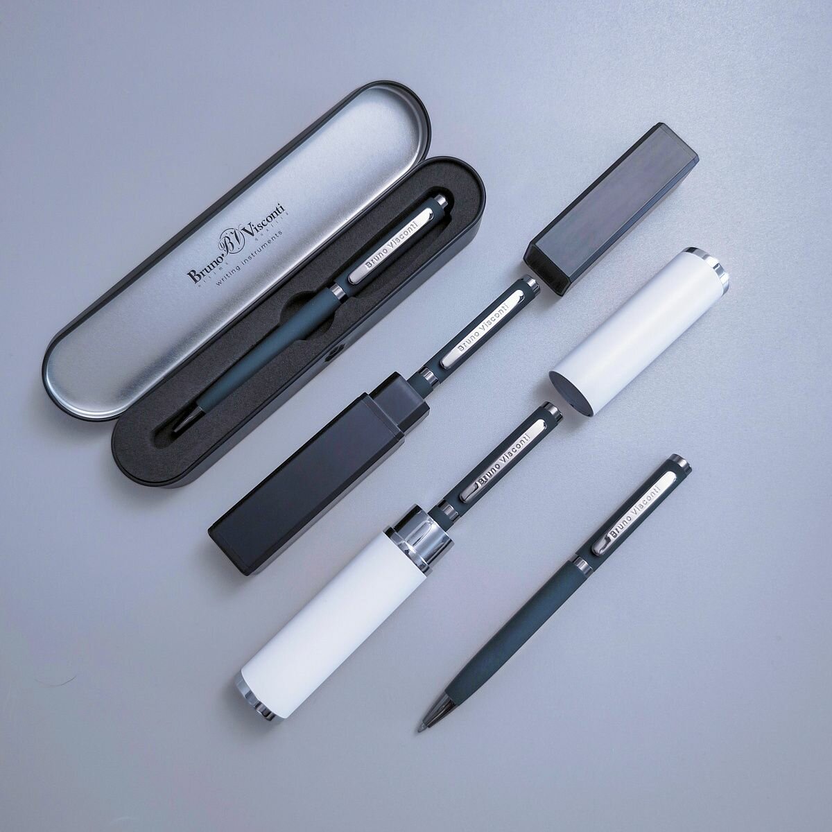 Ручка BrunoVisconti шариковая автоматическая 1 мм, синяя, в чёрном футляре SAN REMO (черный металлический корпус) Арт. 20-0249/601
