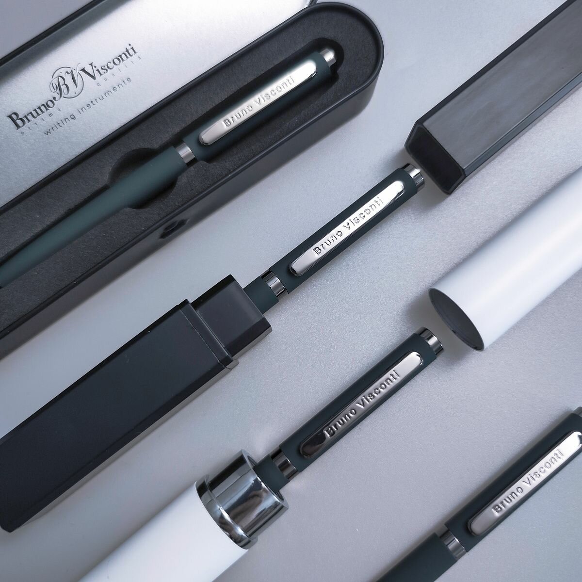 Купить Ручка шариковая автоматическая BrunoVisconti "FIRENZE" цвет корпуса зеленый 1 мм, синяя, в металическом черном прямоугольном тубусе
