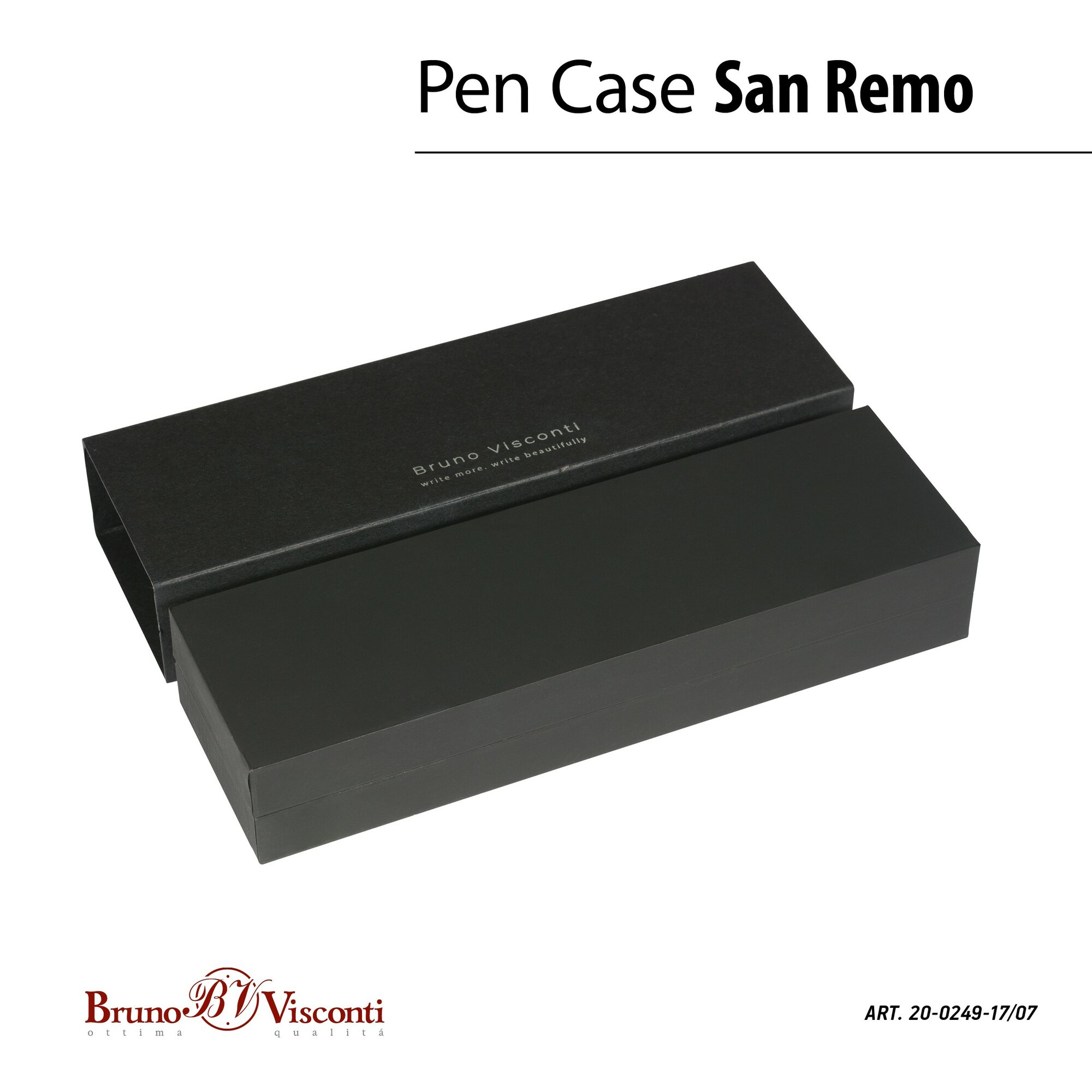 Ручка BrunoVisconti шариковая автоматическая 1 мм, синяя, в чёрном футляре SAN REMO (черный металлический корпус) Арт. 20-0249/601