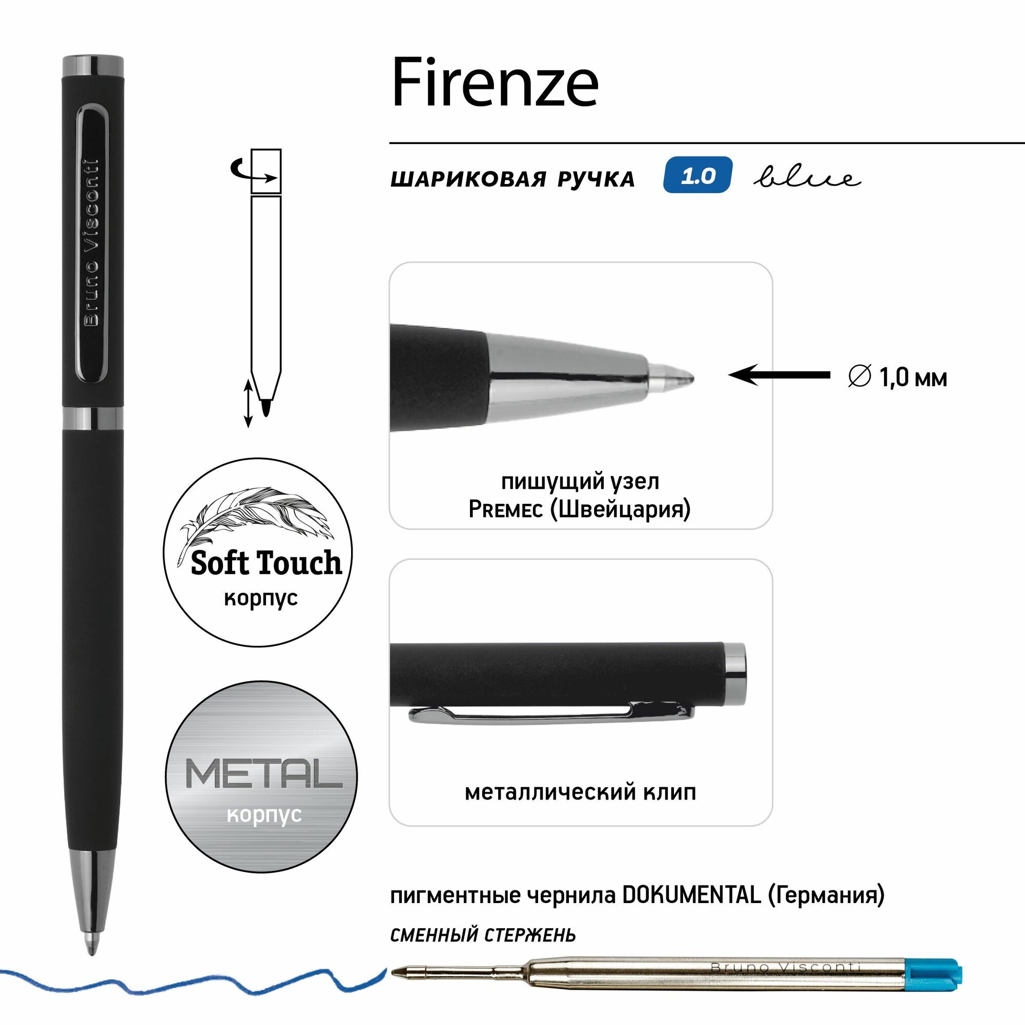 Ручка шариковая автоматическая Bruno Visconti Firenze (0.7мм, синяя, корпус черный) (20-0298/03), 1шт.