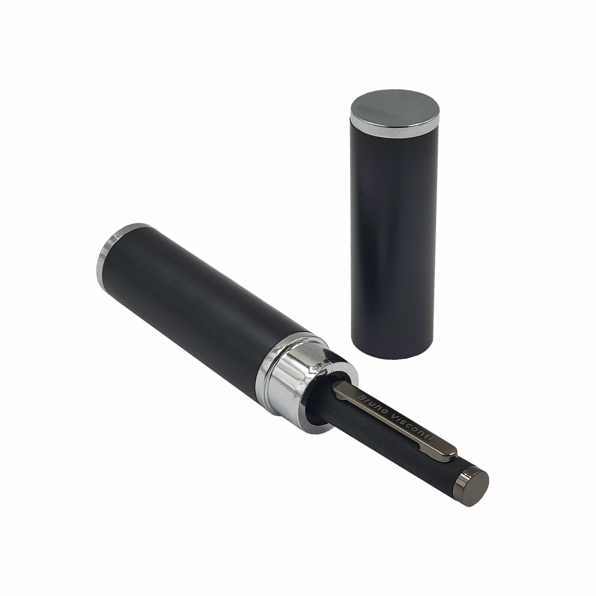 Купить Ручка BrunoVisconti шариковая автоматическая 1 мм, синяя, в черном круглом тубусе FIRENZE (черный металлический корпус) Арт. 20-0298/02