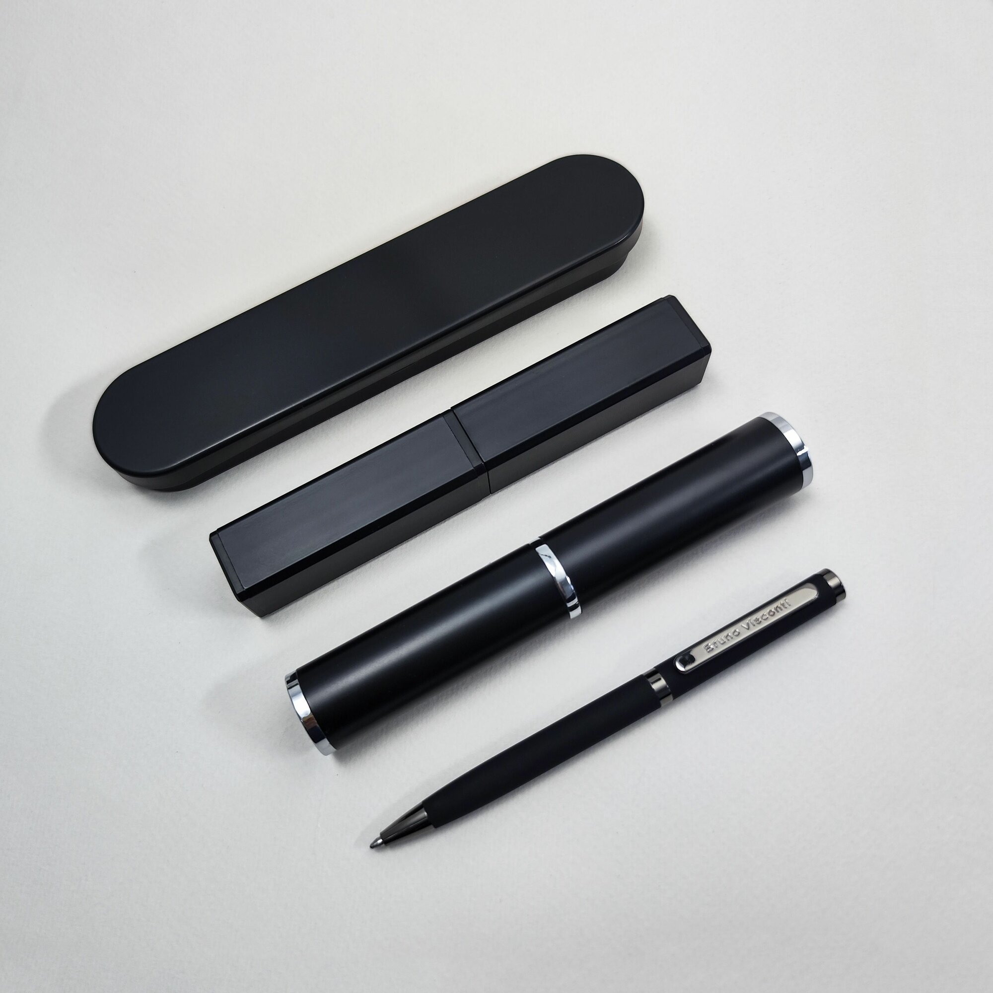 Ручка "PORTOFINO" В металлическом футляре 1,0 ММ, синяя (корпус черный, футляр черный)
