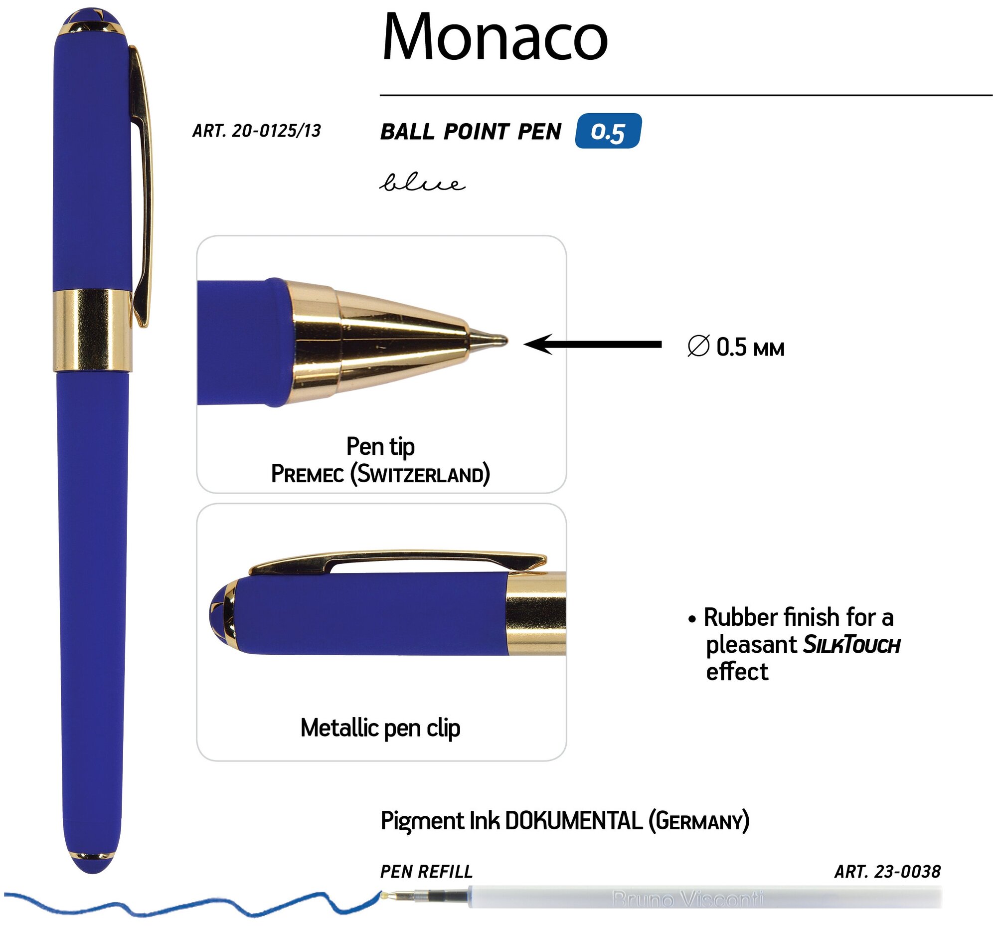 Ручка "MONACO" шариковая 0.5 ММ, синяя (темно-синий корпус)