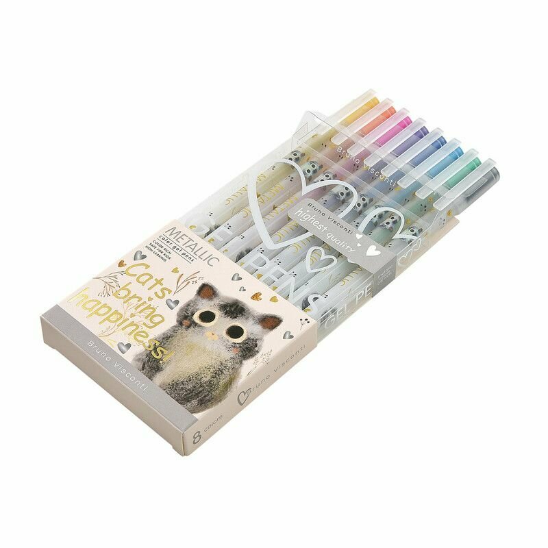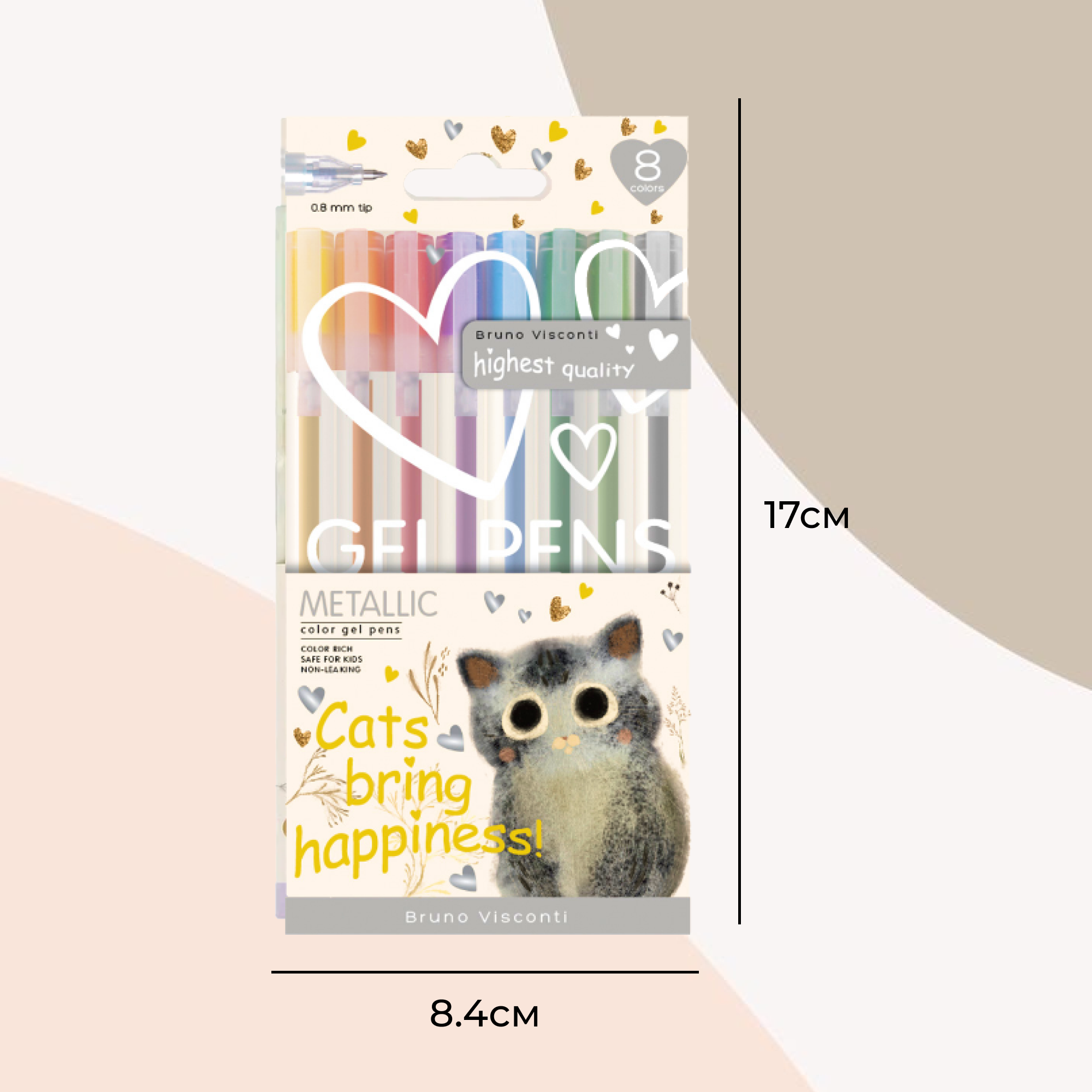 Купить Набор гелевых ручек Bruno Visconti UniWrite "METALLIC. Котики приносят счастье" 8 цветов, 0,8мм