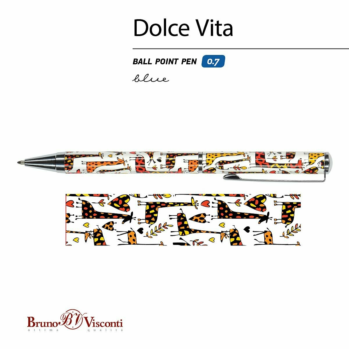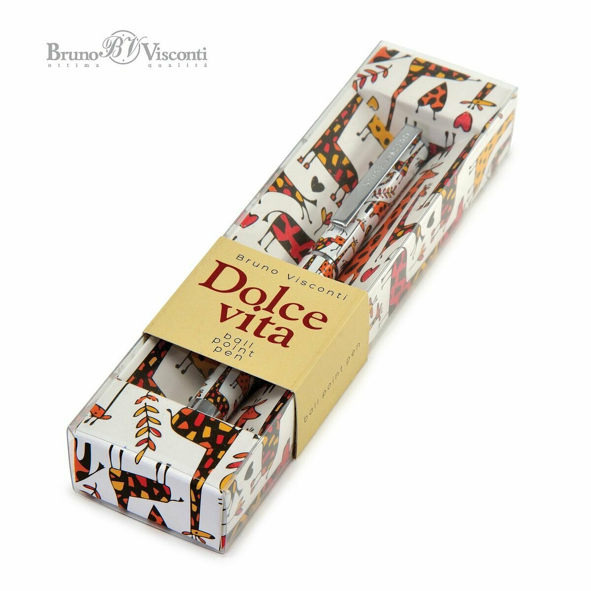 Купить Ручка BrunoVisconti шариковая автоматическая, 0.7 мм синяя, Dolce Vita "Жирафы" в футляре, металлический корпус