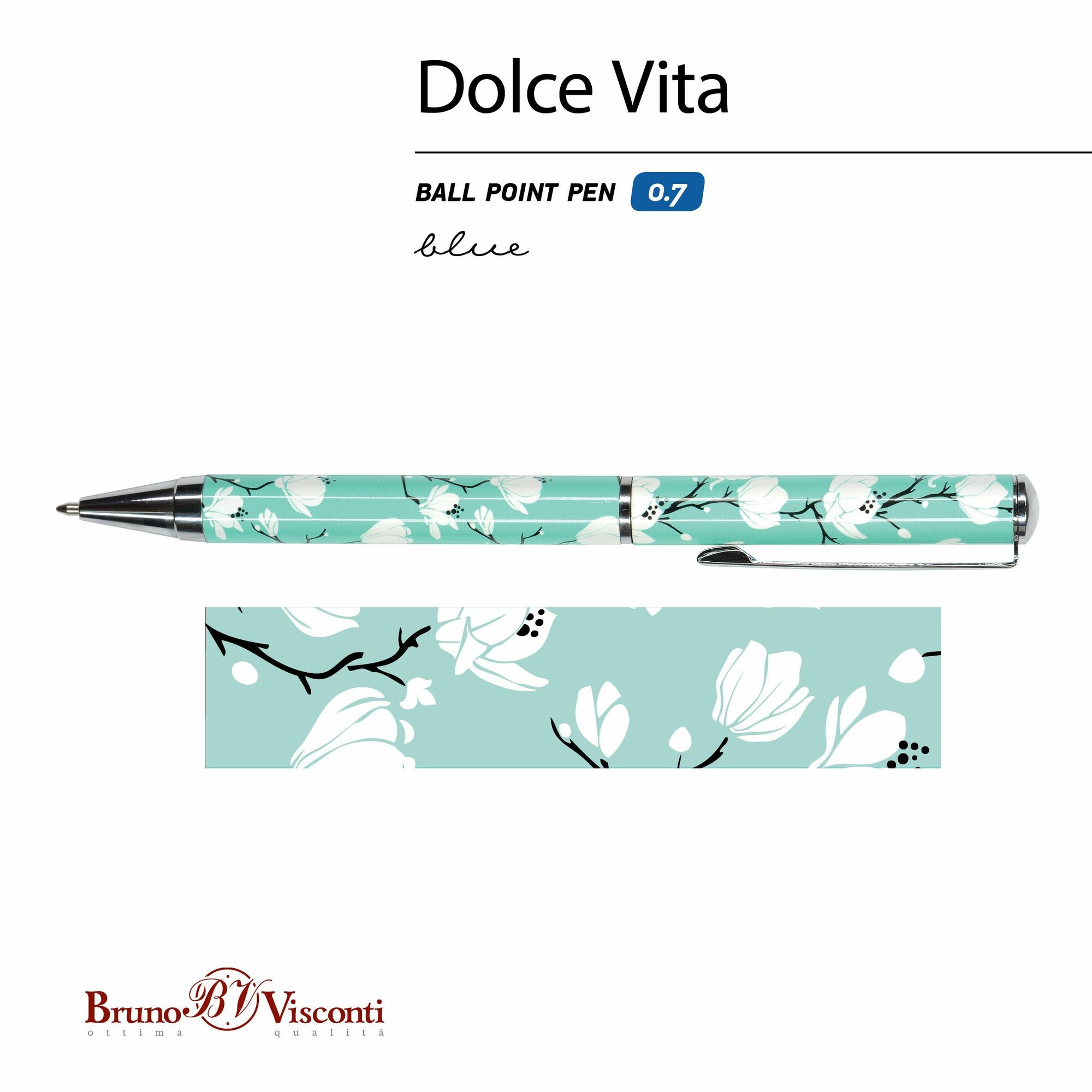 Купить Ручка BrunoVisconti шариковая автоматическая, 0.7 мм синяя, Dolce Vita камелии в футляре, металлический корпус Арт. 20-0252/08