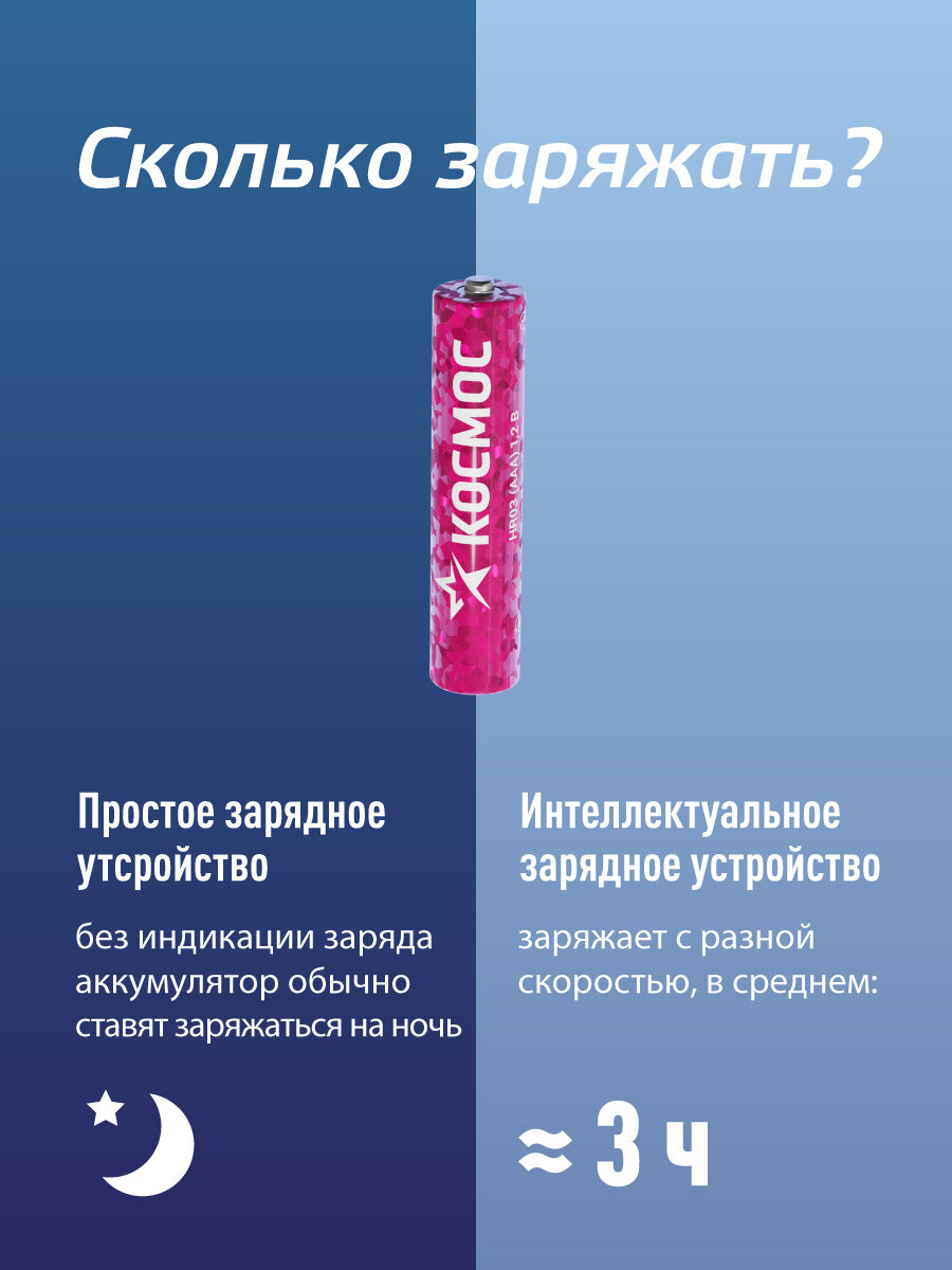 Аккумуляторные батарейки Космос AAA (HR03) 1100 mAh, мизинчиковые 4 шт.