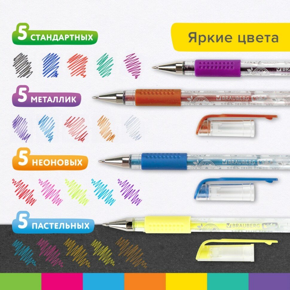 Ручки гелевые цветные с грипом ароматизированные, Набор 20 Цветов, Fruits линия 0,5 мм, Brauberg Kids, 143824