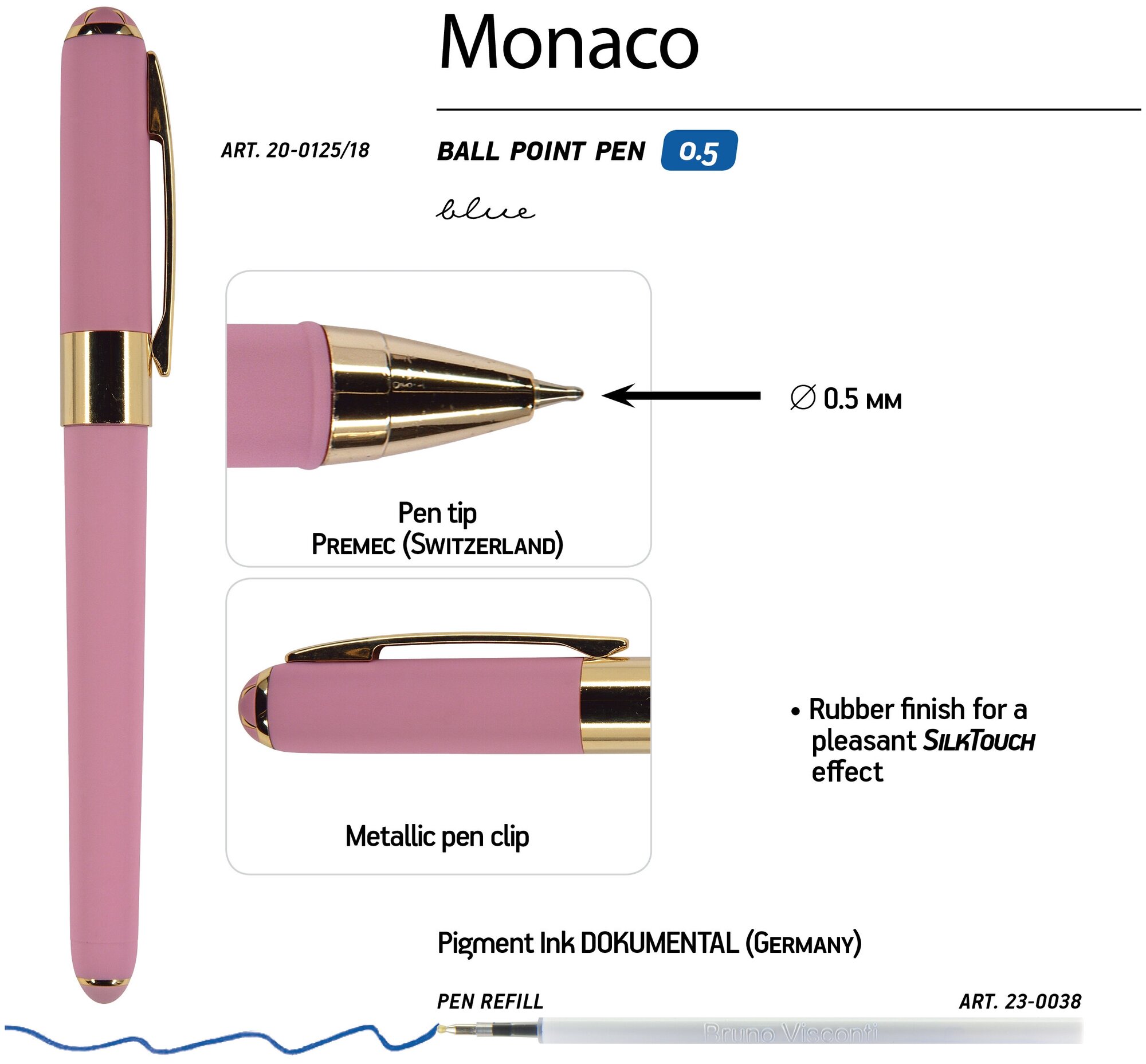 Купить Ручка "MONACO" шариковая 0.5 ММ, синяя (розовый корпус)