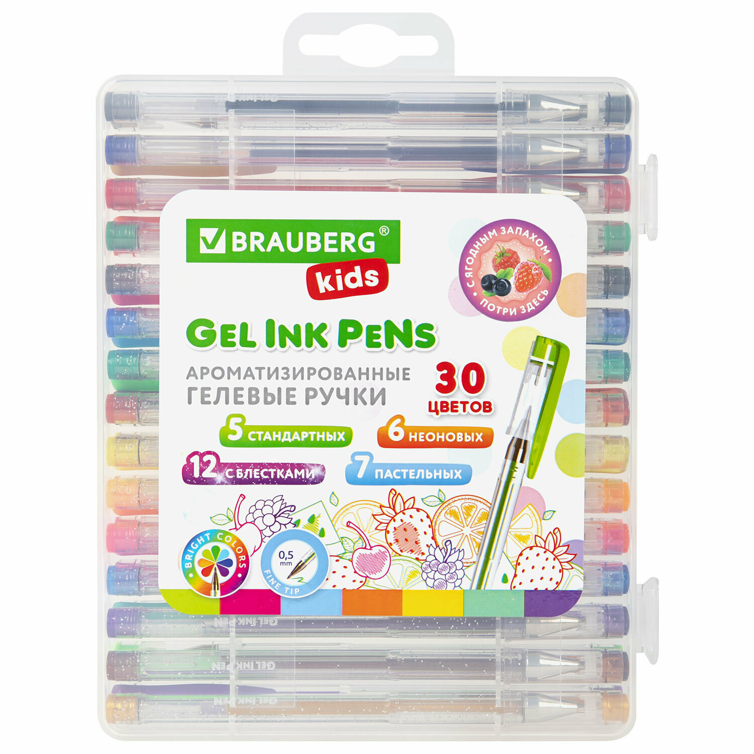 Купить Ручки гелевые цветные ароматизированные, Набор 30 Цветов, Fruits, линия 0,5 мм, Brauberg Kids, 143823