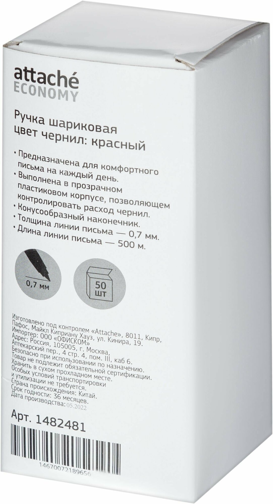 Купить Ручки шариковые Attache Economy, красные, линия 0,7 мм, набор 50 шт