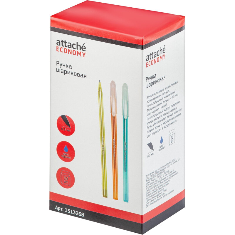Купить Ручка шариковая неавт Attache Economy цвета корп в асс, линия 0.5мм, синяя - 50 шт.