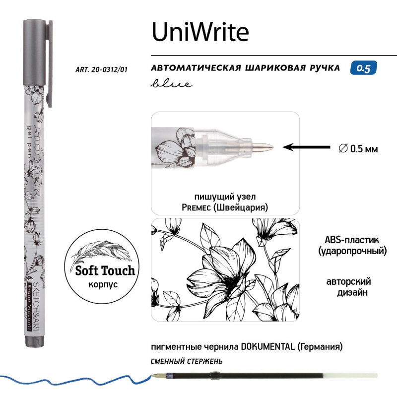 Ручка гелевая SKETCH&ARTUniWrite. SILVER 0.8мм серебряная 20-0312/01 интересное: