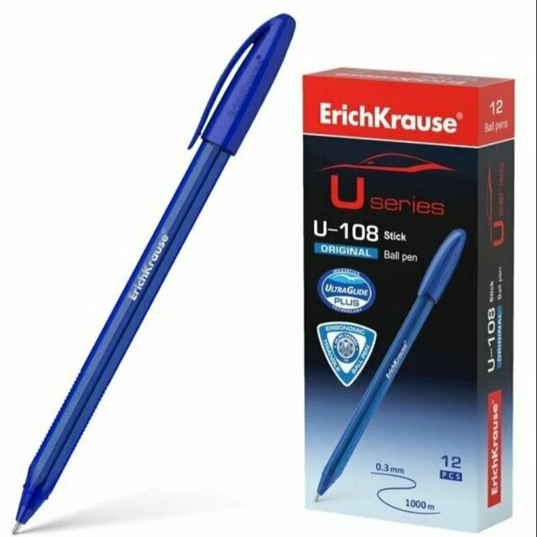 Ручка шариковая ErichKrause® U-108 Original Stick 1.0, Ultra Glide Technology, синяя, 12 шт. интересное: