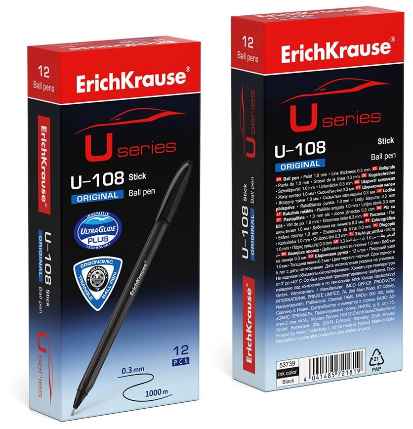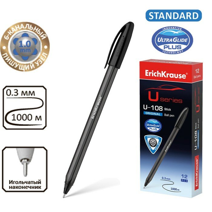 Набор ручек шариковых ErichKrause U-108 Stick Original 1.0, Ultra Glide Technology, чернила черные 1уп/12 шт интересное: