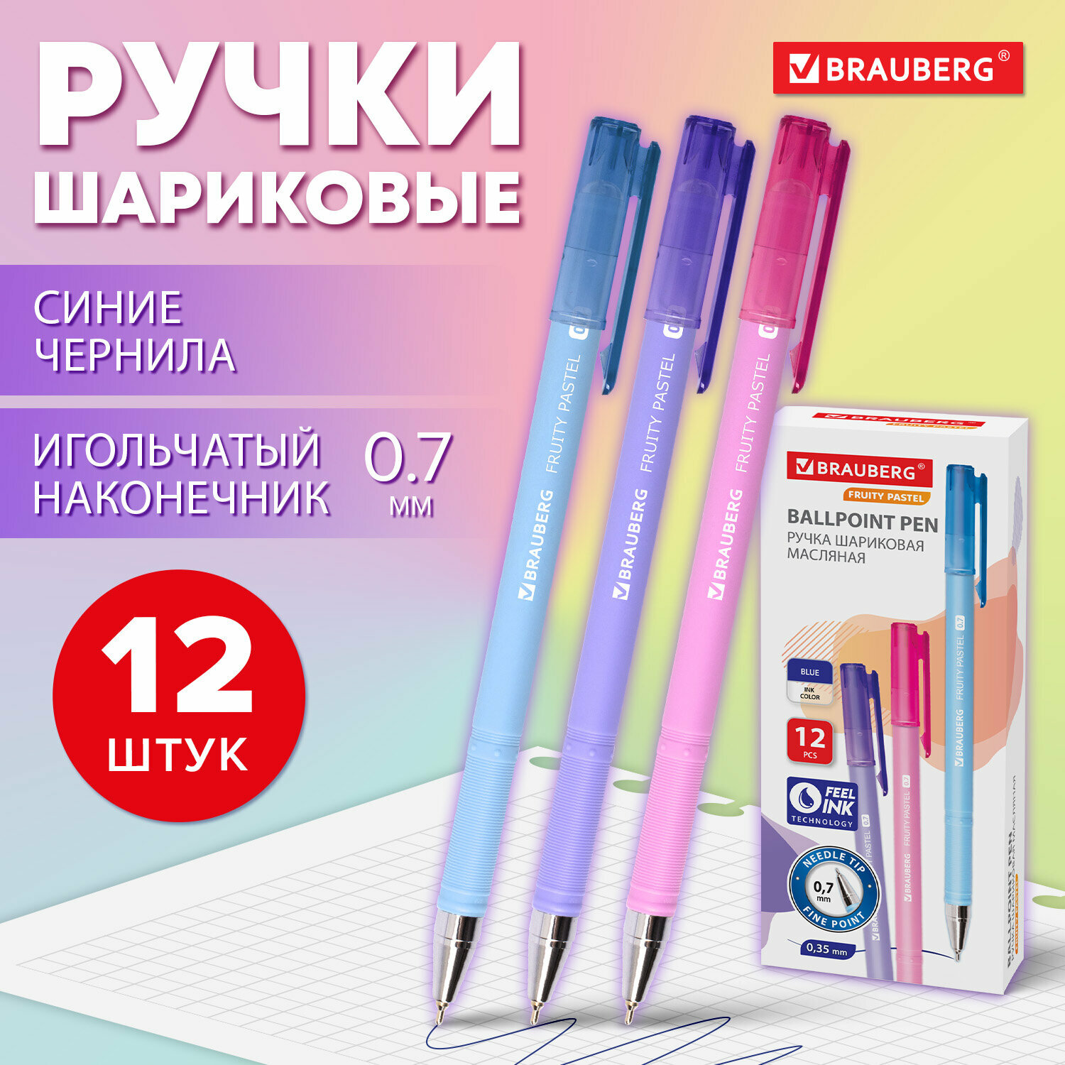 Ручка шариковая масляная BRAUBERG FRUITY Pastel, комплект 12 штук, синяя, узел 0,7 мм, 880165 интересное: