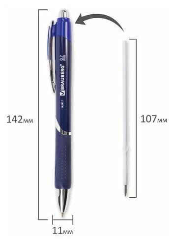 Ручка шариковая автоматическая с грипом BRAUBERG Dash, пишущий узел 0,7 мм, линия 0,35 мм, резиновый упор, синяя, OBPR208 (арт. 142417)