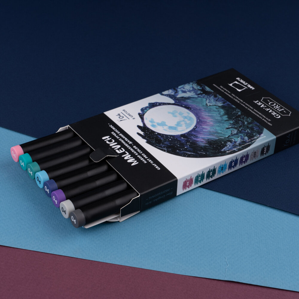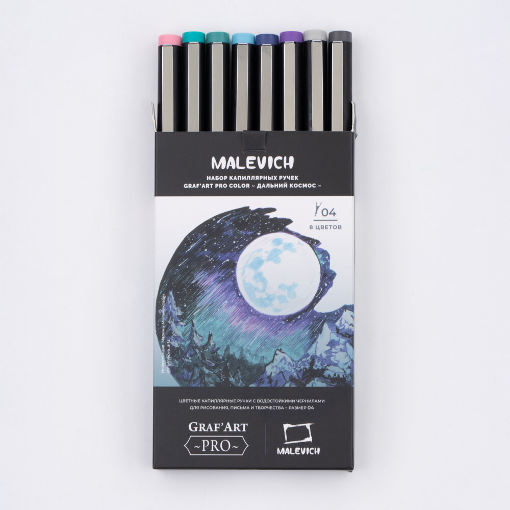 Купить Набор цветных капиллярных ручек Малевичъ GrafArt PRO, цветные линеры "дальний космос", 8 шт