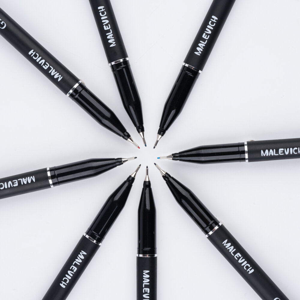 Набор цветных капиллярных ручек Малевичъ GrafArt PRO, базовые линеры цветные, 12 шт